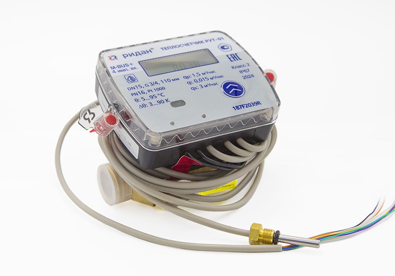 Теплосчетчики комбинированные Ридан РУТ-01 предназначены для измерения, обработки и представления текущей и архивной информации о количестве потребленной тепловой энергии и энергии охлаждения, температуре, расходе теплоносителя и сопутствующих данных в системах водяного отопления коммунального хозяйства. Теплосчетчик может устанавливаться на подающем или обратном трубопроводе при температуре теплоносителя от 5 до 95 °С.