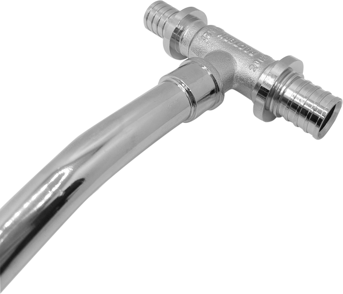 Тройник РОСТерм Т-образный для радиатора предназначен для подключения отопительных приборов с нижним подключением к трубам из сшитого полиэтилена диаметром 16 мм. Подходит для однотрубных и двухтрубных систем радиаторного отопления, обеспечивая надёжное и герметичное соединение, которое предотвращает возможные протечки и гарантирует долговечность и эффективность всей системы.