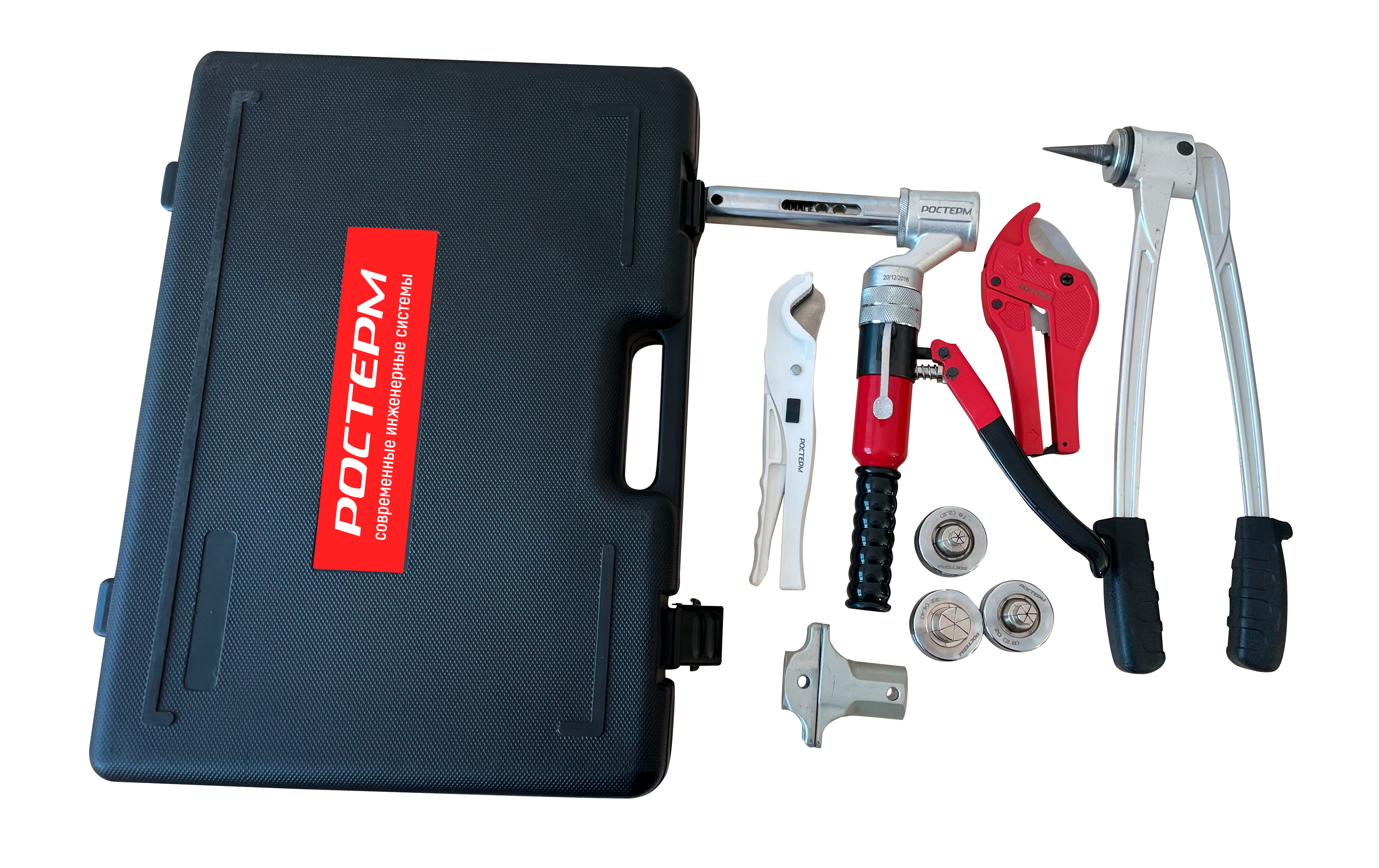 Комплект гидравлического инструмента для системы PE-X РОСТерм 16-32 представляет собой набор для профессионального использования. Все модели изготовлены из прочной стали и отличаются стойкостью к нагрузкам.