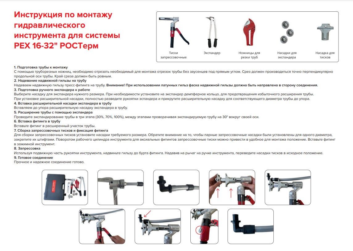 Инструмент может применяться для монтажа труб PE-X любых брендов и производителей.